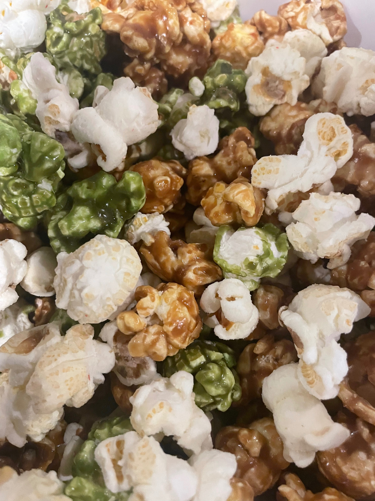 Wildcat Mix: A flavor adventure awaits with our Wildcat Mix! Gourmet caramel popcorn meets the sharp tang of white cheddar and the sweet crispness of apple. It's a taste sensation!