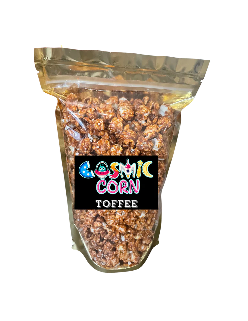 We are dedicated to the artisanal preparation methods. While other alternatives may produce mass quantities and use spray-on techniques, Cosmic Corn remains committed to making each batch individually. Wet popped and gently tumbled, you know each serving of Toffee Cosmic Corn is carefully crafted for the best flavor. Plus, our recipes are created to provide out of this world flavor you love!